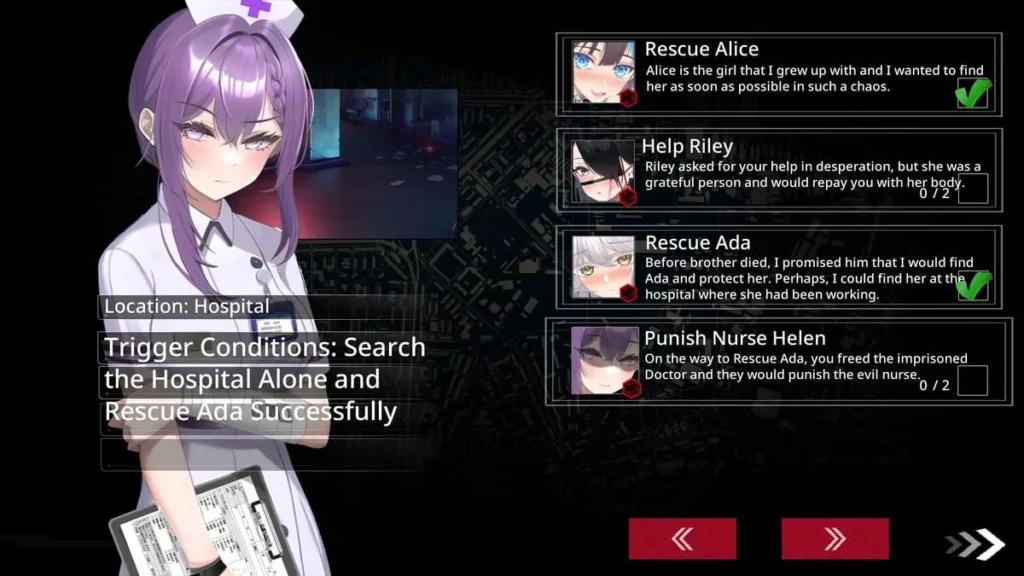 This isn’t subtle, and it shouldn’t be. Your goal is simple yet desperate: survive and unravel the conspiracy behind the virus. You’re not alone, though. Your childhood friend, Alice, becomes your first steadfast ally, using her medical skills to keep you going. Later, you’re joined by Ada, your brother’s wife, adding another layer of complex relationship dynamics to manage and protect. The narrative of Fatal Countdown immoral List of Desires unfolds through visual novel-style segments, your choices during the day, and the outcomes of your survival efforts. You’ll grow attached to your small group, making the constant threats to your shelter feel deeply personal.